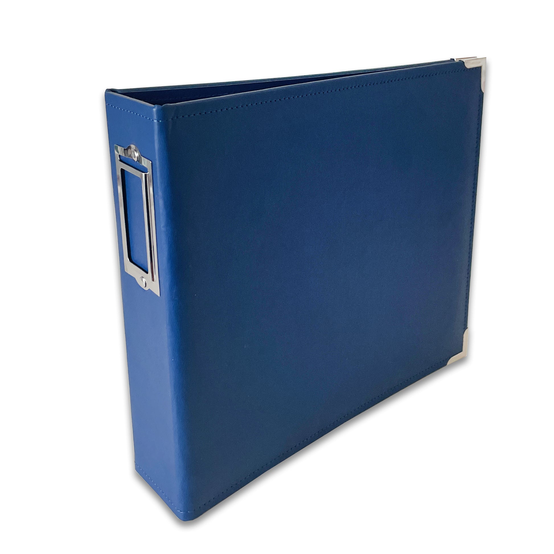 - 1- 8" x 8" Navy faux leather album with 20 divided page protectors. Album is 24.25" x 9.25" open and 10.75" x 9.25 x 2.5" closed. Album has metal corners and 1 metal bookplate on spine.